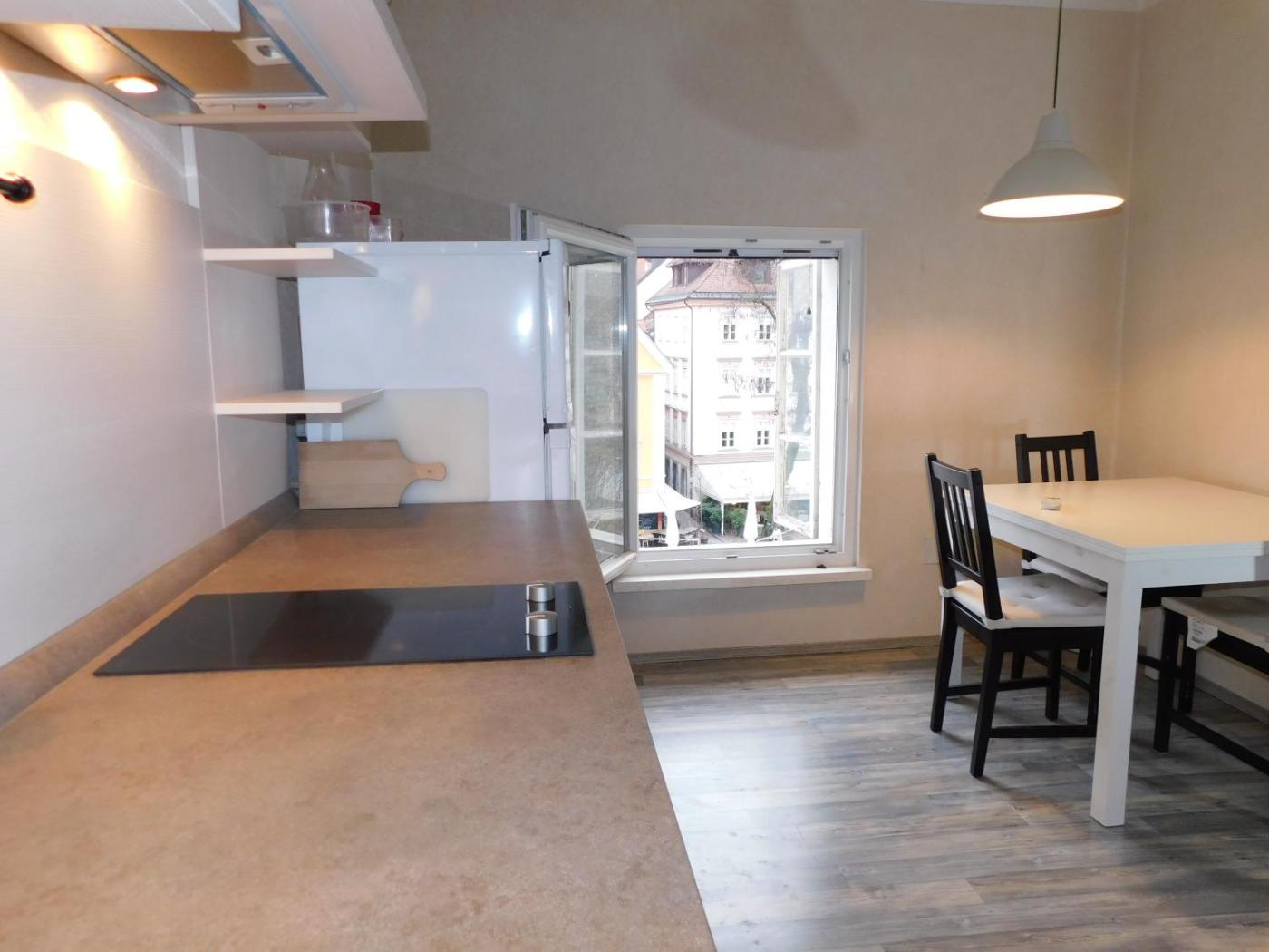 One-Bedroom Apartment. The air-conditioned apartment features 1 bedroom and 1 bathroom with a shower and a hairdryer. Guests can make meals in the kitchenette that comes with a stovetop, a refrigerator, kitchenware and an electric kettle. The apartment has parquet floors, a seating area with a flat-screen TV, a washing machine, a dining area as well as city views. The unit offers 2 beds. ;