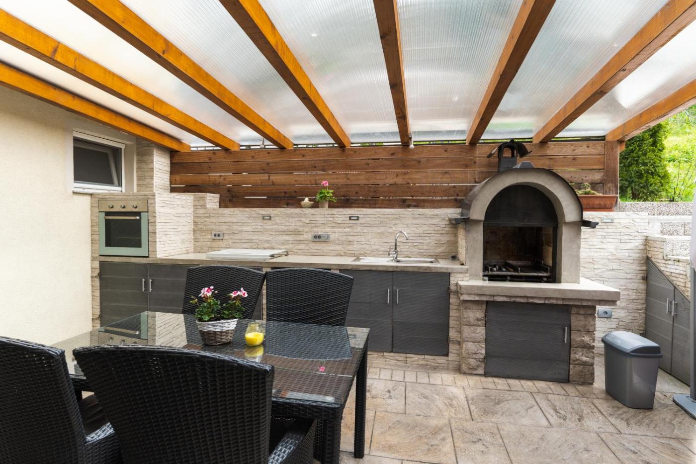 Double Room with Terrace. This double room features a terrace with a fully equipped outdoor kitchen and a bathroom.